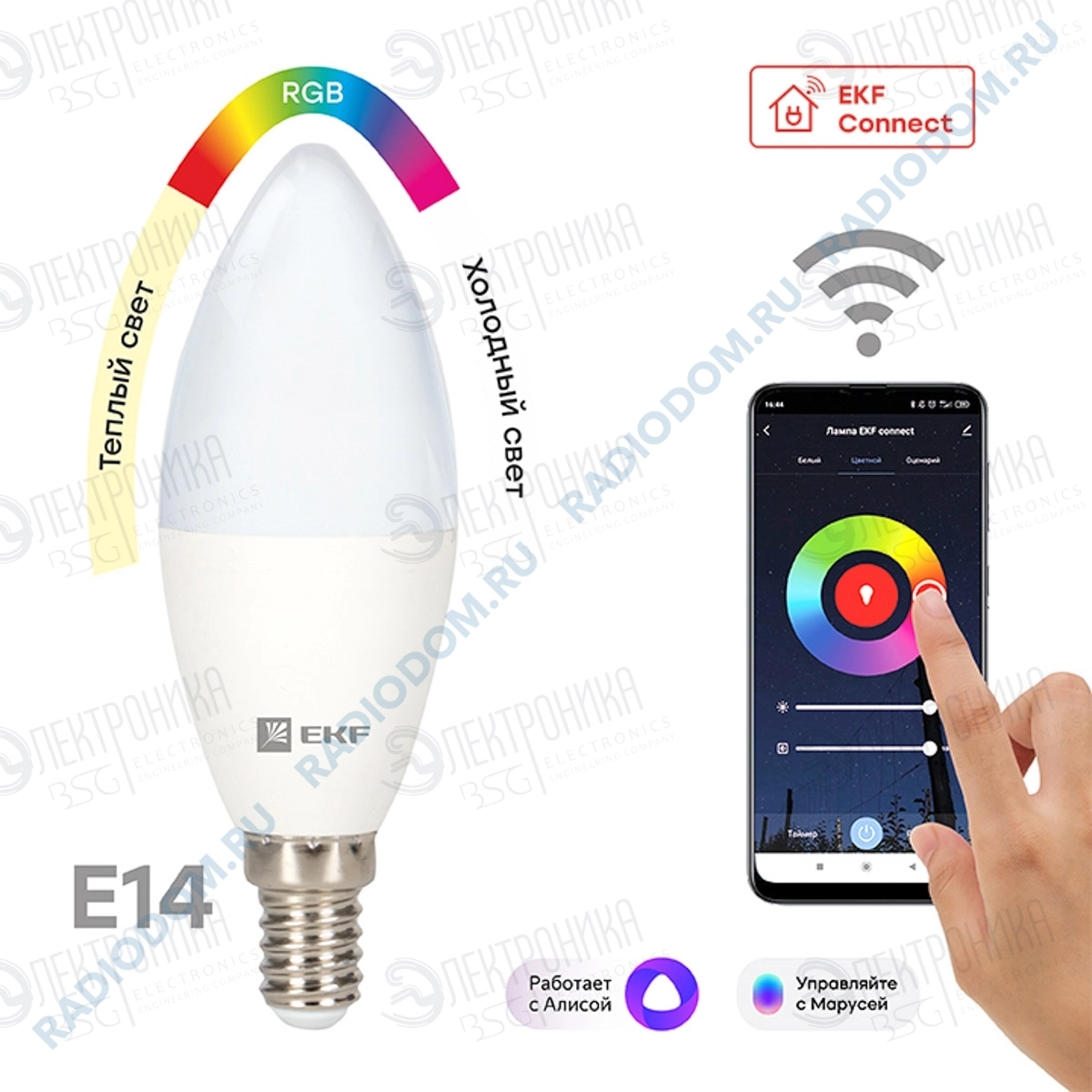 Умными лампами можно дистанционно управлять по Wi-Fi с помощью мобильного приложения EKF Connect для iOS и Android.