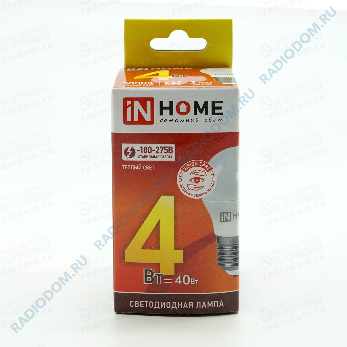 Лампа светодиодная (LED) шарообразная 4Вт 220В Е27 3000К 360Лм IN HOME