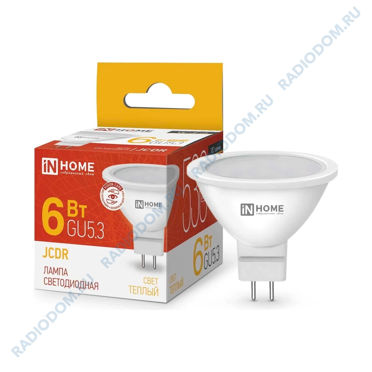 Лампа светодиодная (LED) рефлектор JCDR 6Вт 220В GU5,3 3000К 480Лм 4690612020365 IN HOME