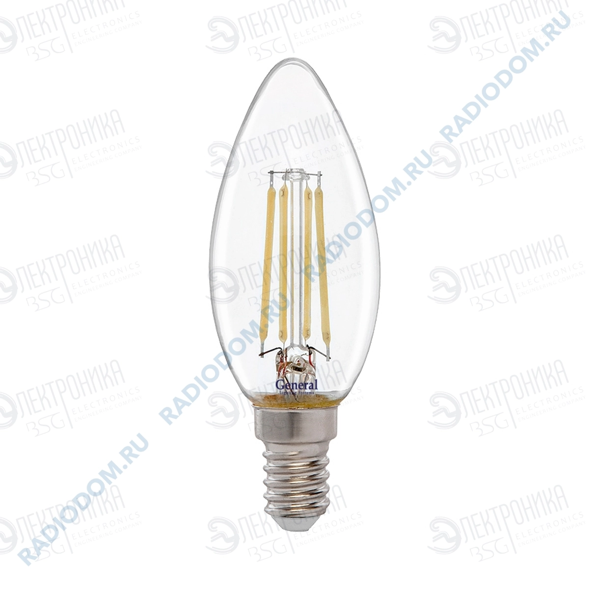 Лампа светодиодная филаментная (LED) свеча 7Вт 220В Е14 4500К 510Лм General