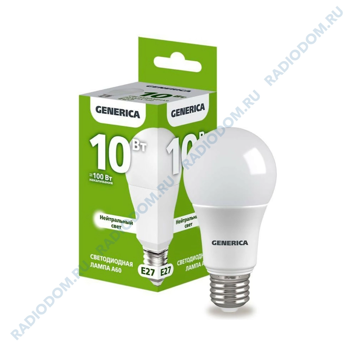 Лампа светодиодная (LED) грушевидная А60 10Вт 220В Е27 4000К 1000Лм GENERICA