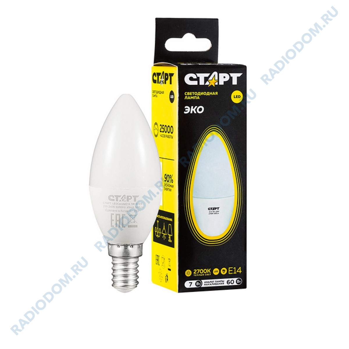 Лампа светодиодная (LED) свеча 7Вт 220В Е14 2700К 560Лм СТАРТ