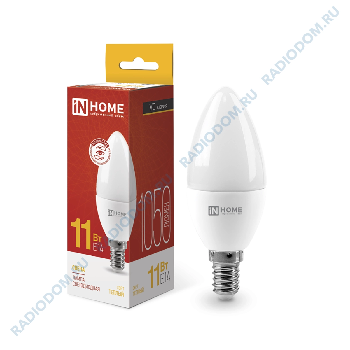 Лампа светодиодная (LED) свеча 11Вт 220В E14 3000К 600Лм 4690612020464 IN HOME