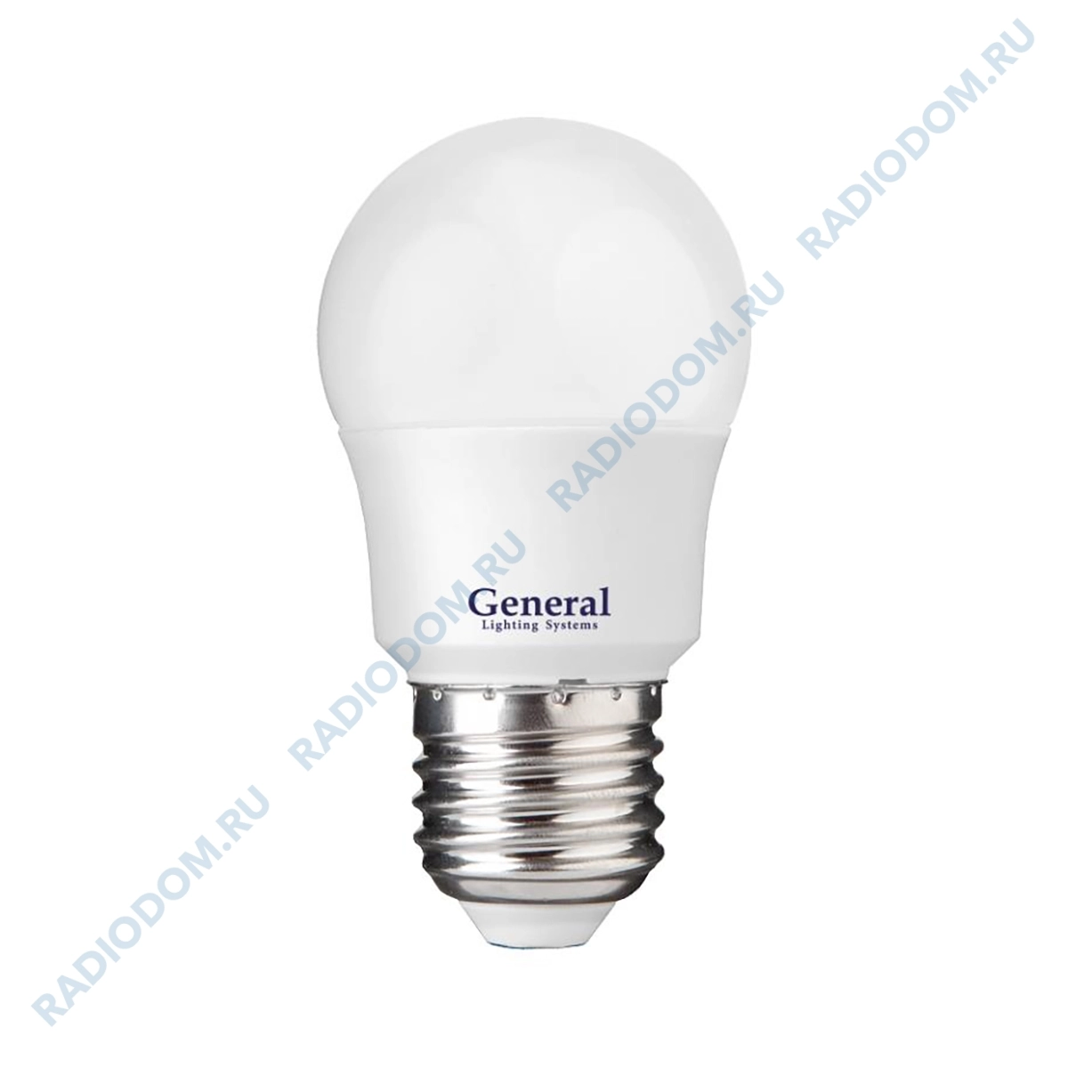 Лампа светодиодная (LED) шар 8Вт 220В E27 2700K 610Лм General