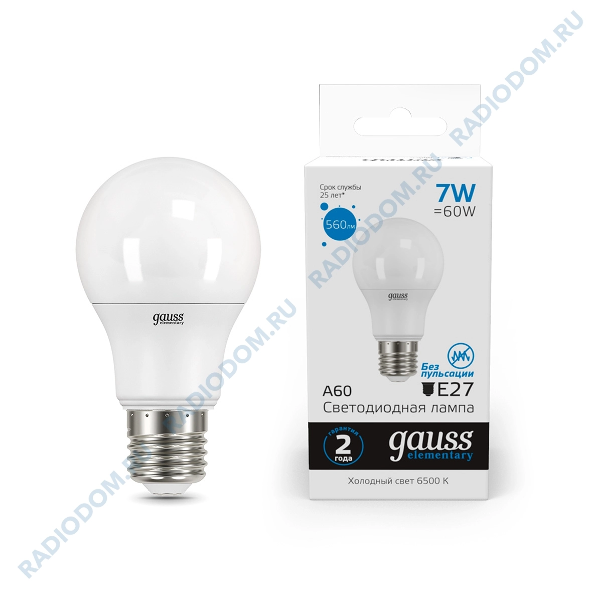 Лампа светодиодная (LED) грушевидная А60 7Вт 220В E27 6500K 560Лм GAUSS