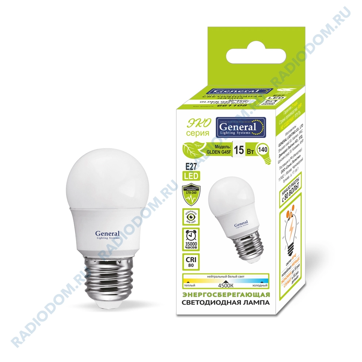 Лампа светодиодная (LED) шар 15Вт 220В Е27 6500К 1070Лм General