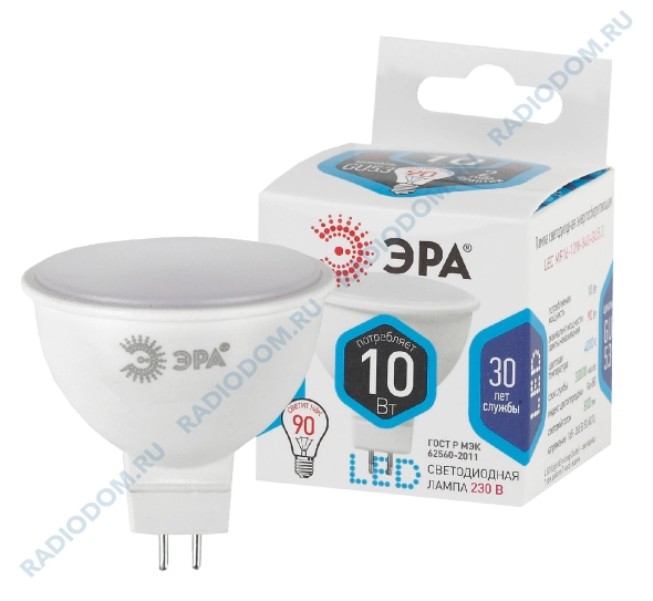 Лампа светодиодная ЭРА STD LED MR16-10W-840-GU5.3 10Вт софит нейтральный белый свет GU5.3