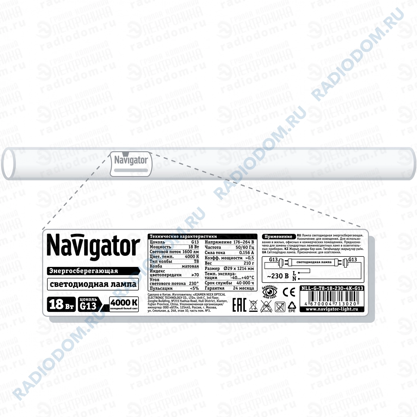 Лампа светодиодная (LED) трубка 18Вт 220В T8 4000К 1600Лм 71302 Navigator