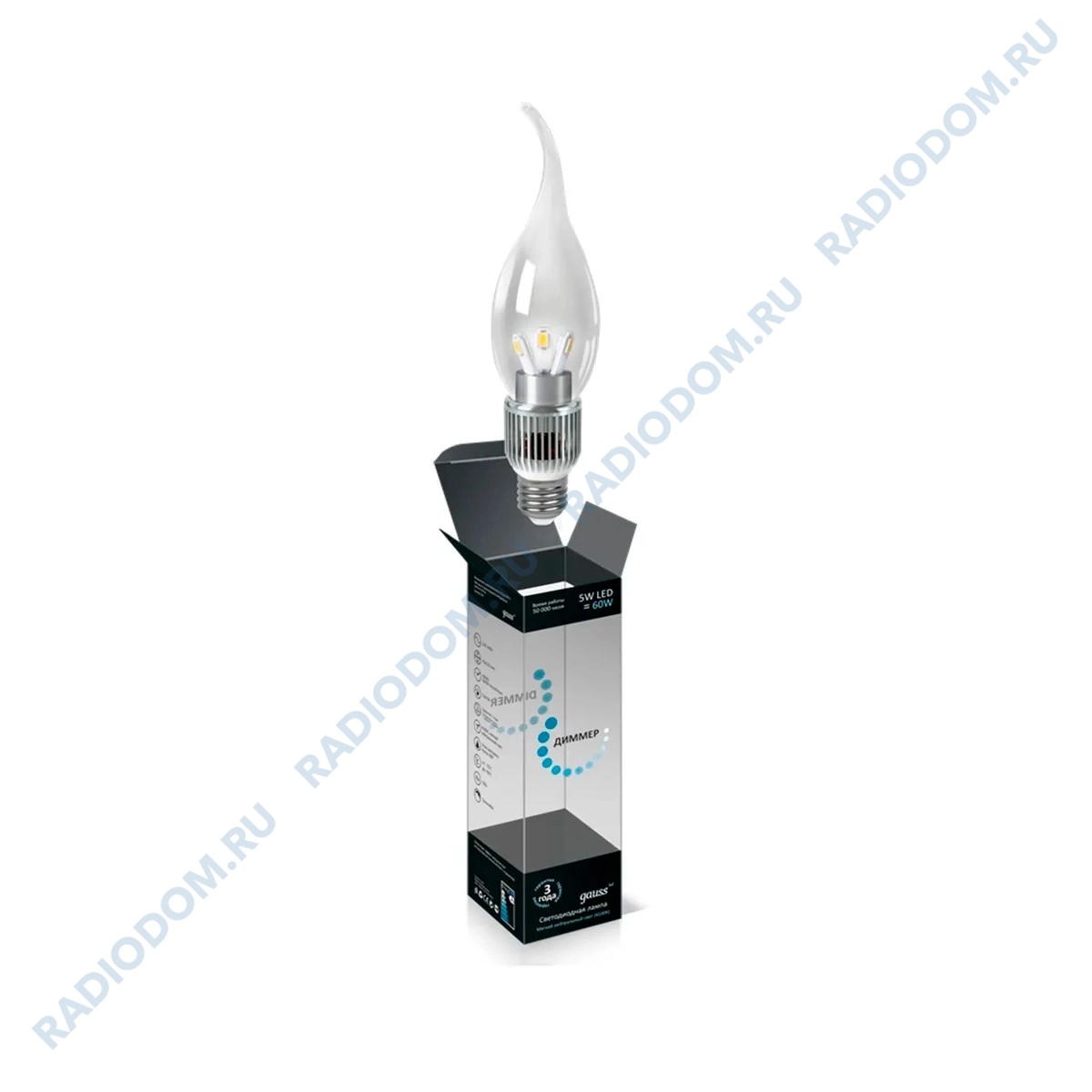 Лампа светодиодная 220В E14 5,0Вт, свет белый 4100K прозрачная Candle Tailed диммируемая gauss HA133201205-D