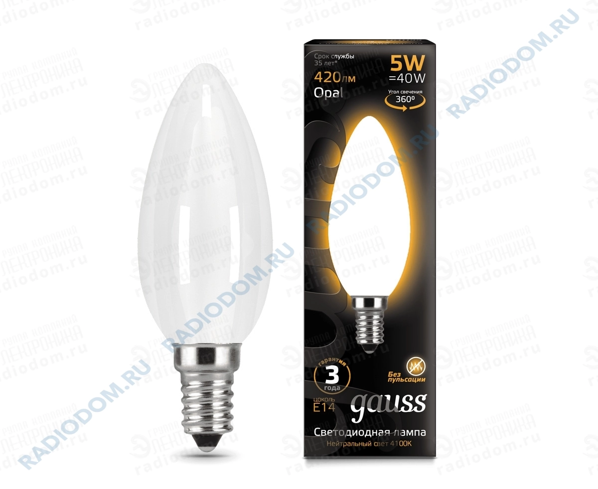 Лампа светодиодная (LED) свеча Candle 5Вт 220В E14 2700К 420Лм Filament OPAL GAUSS