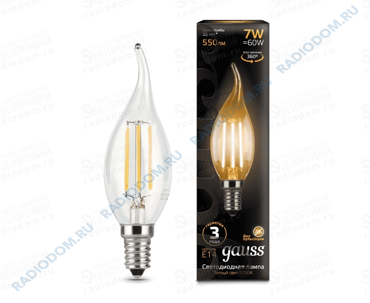 Лампа светодиодная филаментная свеча на ветру 7Вт E14 2700K 104801107 gauss