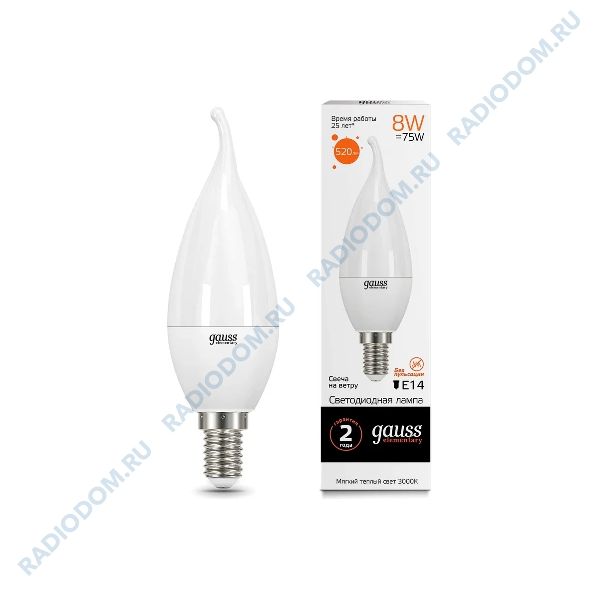 Лампа светодиодная (LED) свеча на ветру 8Вт 220В Е14 2700К 520Лм 34118 gauss
