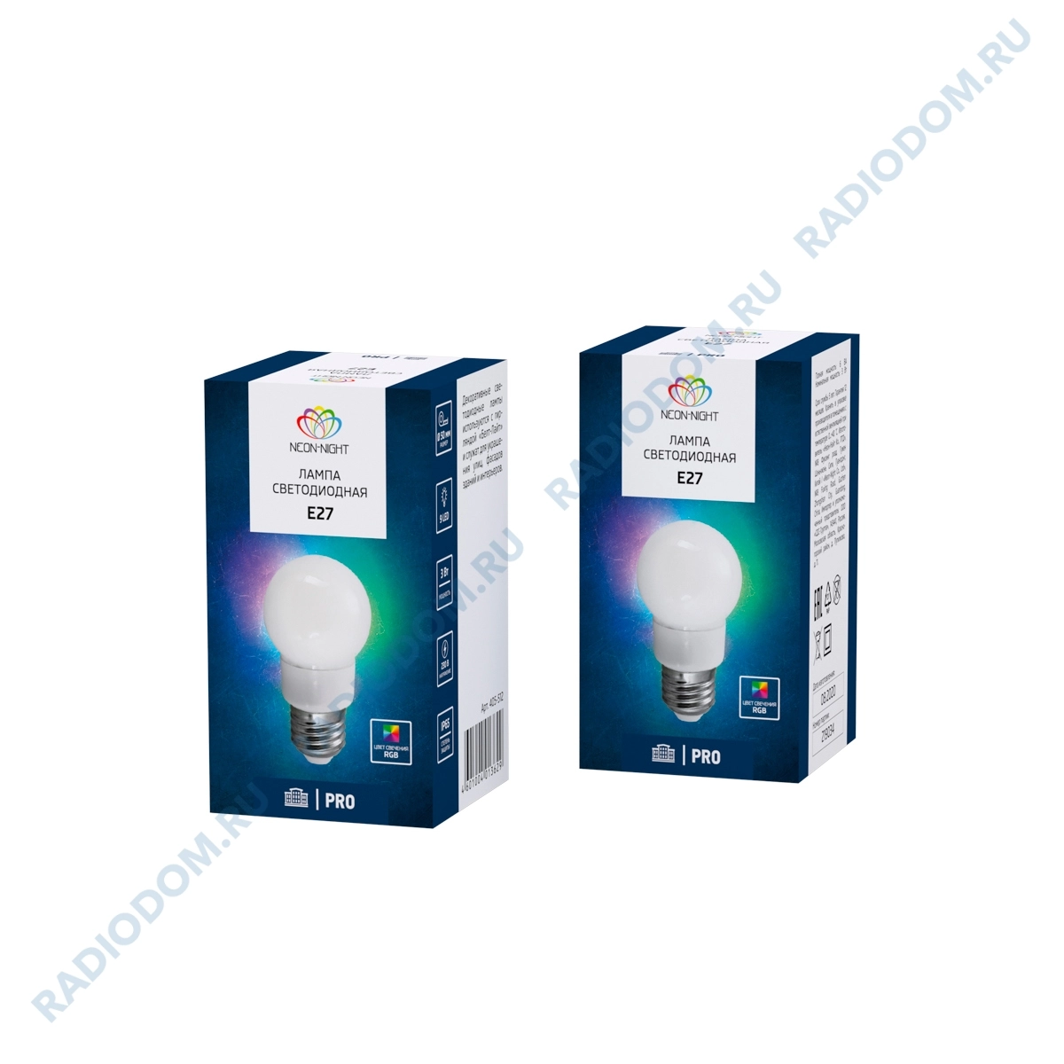 Лампа светодиодная 220В, E27, 5,0Вт, 405-512, 9 светодиодов, разноцветная Неон-Найт