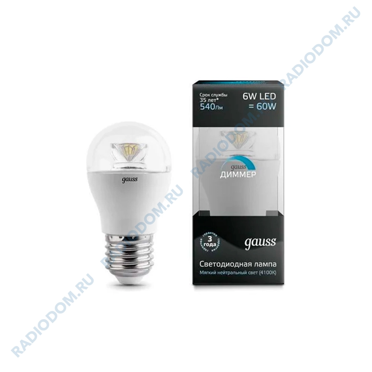 Лампа светодиодная (LED) шар 6Вт 220В Е27 4100К 540Лм 105202206-D gauss