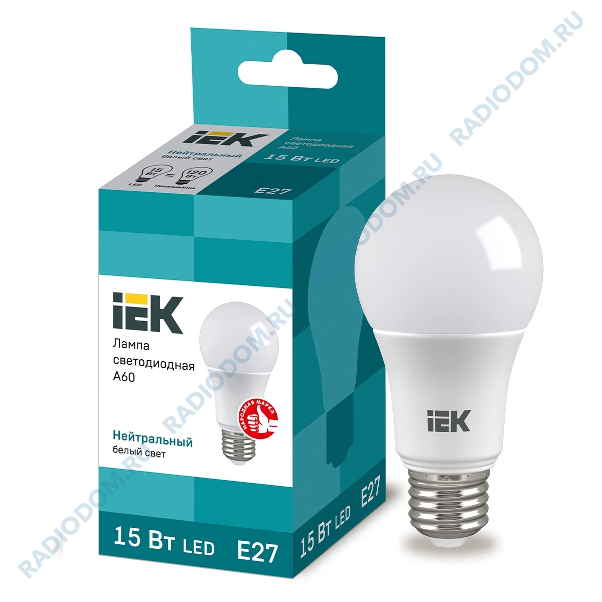 Лампа светодиодная (LED) грушевидная А 15Вт 220В E27 4000К 1350Лм iEK