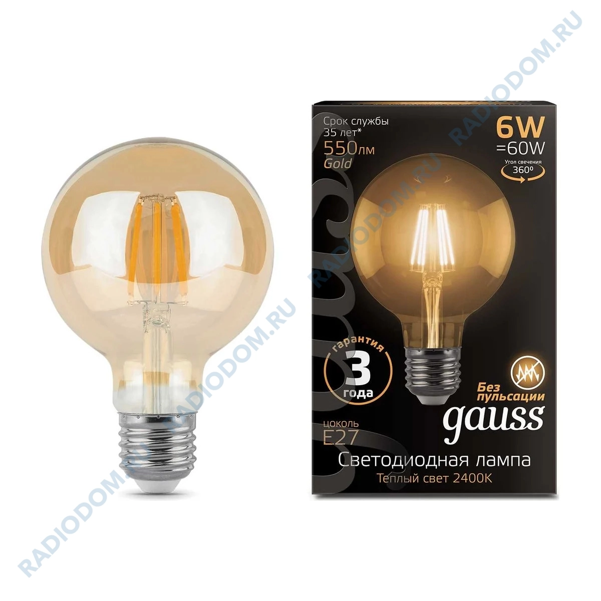 Нить со светодиодами заменила вольфрамовую, повышая долговечность данной модели в десятки раз и обладает углом освещения 360 градусов.