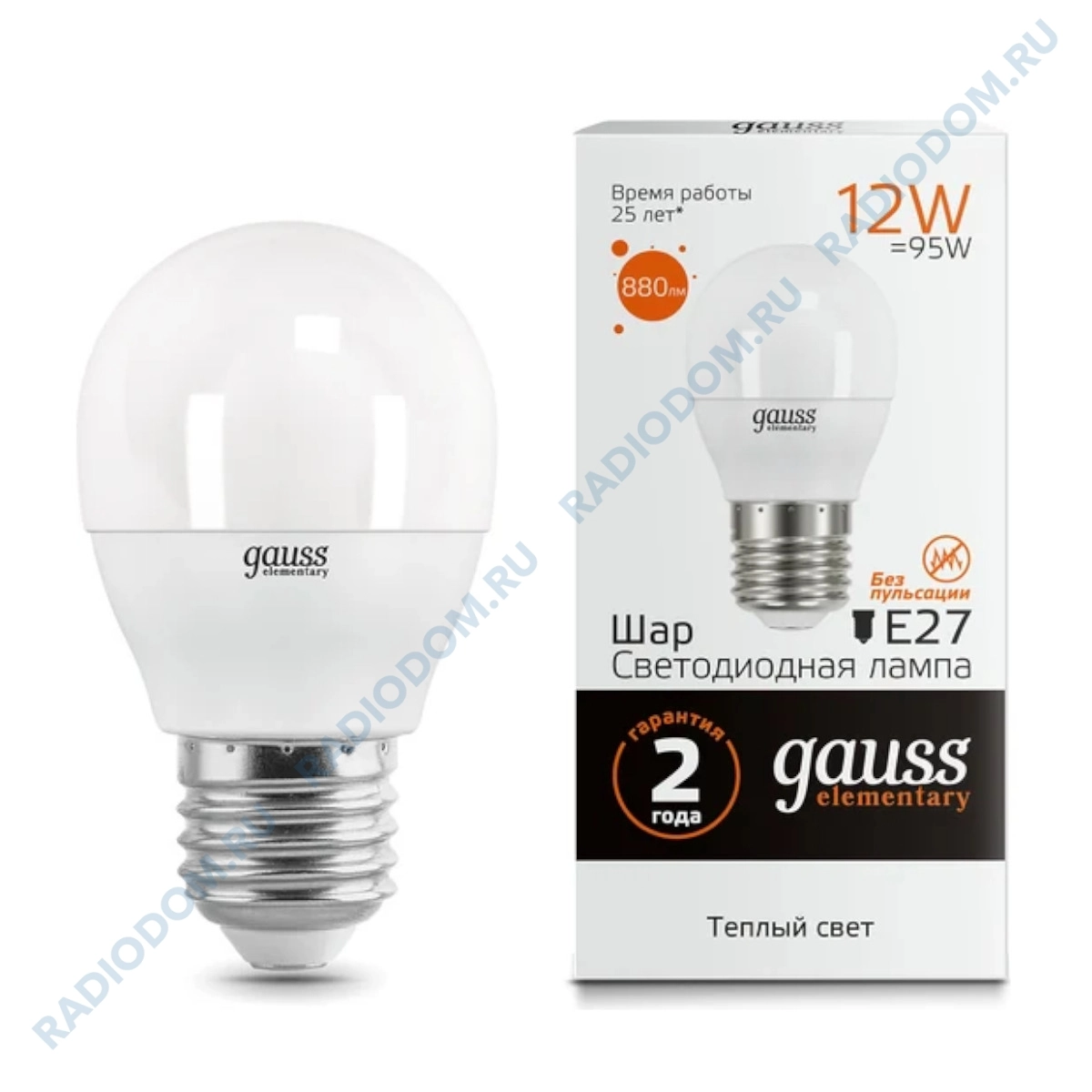 Лампа светодиодная (LED) шар 12Вт 220В E27 3000К 880Лм 53212 gauss