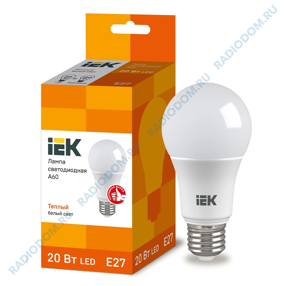 Лампа светодиодная (LED) грушевидная А 20Вт 230В 3000К 1800Лм iEK