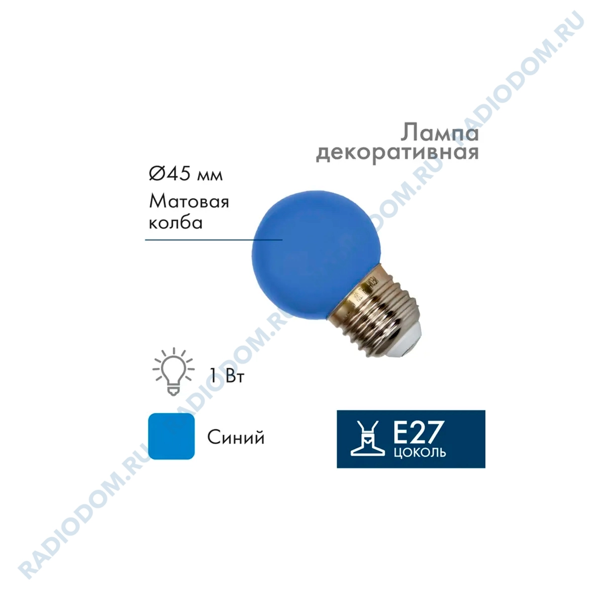 Лампа светодиодная 220В, E27, 5,0Вт, 405-113, 3 светодиода, шар, свет синий Неон-Найт