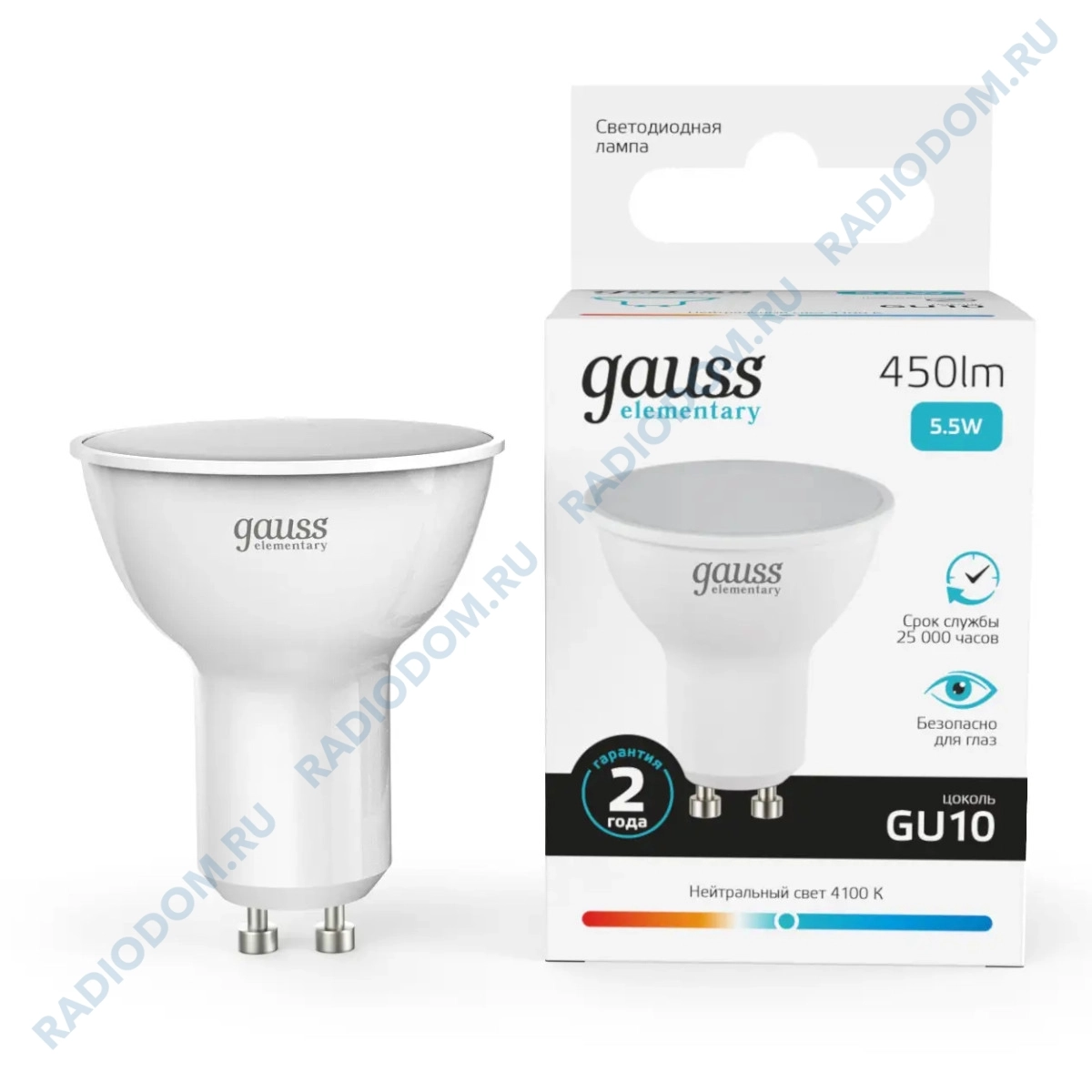 Лампа светодиодная (LED) рефлекторная MR16 5,5Вт 220В GU10 4100К 450Лм Gauss