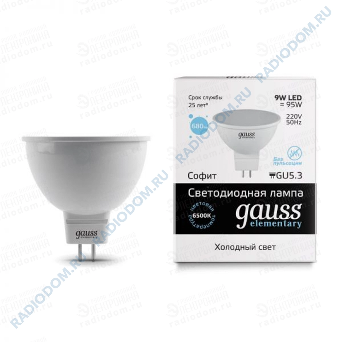 Лампа светодиодная (LED) MR 9Вт 220В GU5,3 6500К 680Лм GAUSS