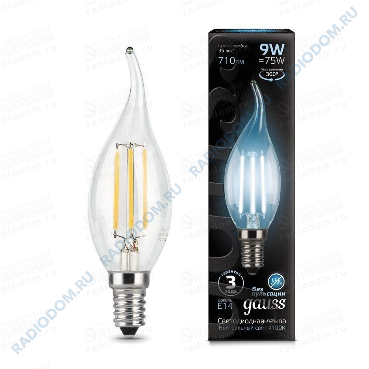 Лампа светодиодная филаментная (LED) свеча на ветру 9Вт 220В Е14 4100К 710Лм 104801209 gauss