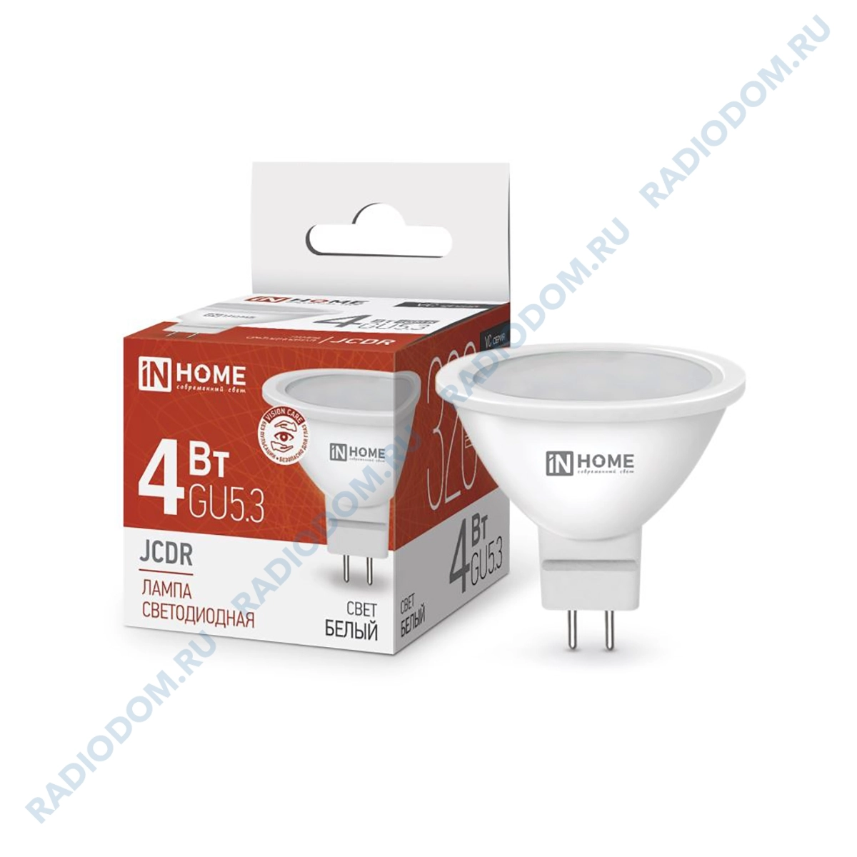 Лампа светодиодная 230В, GU5,3, 4Вт, свет белый LED-JCDR-VC 4000K IN HOME