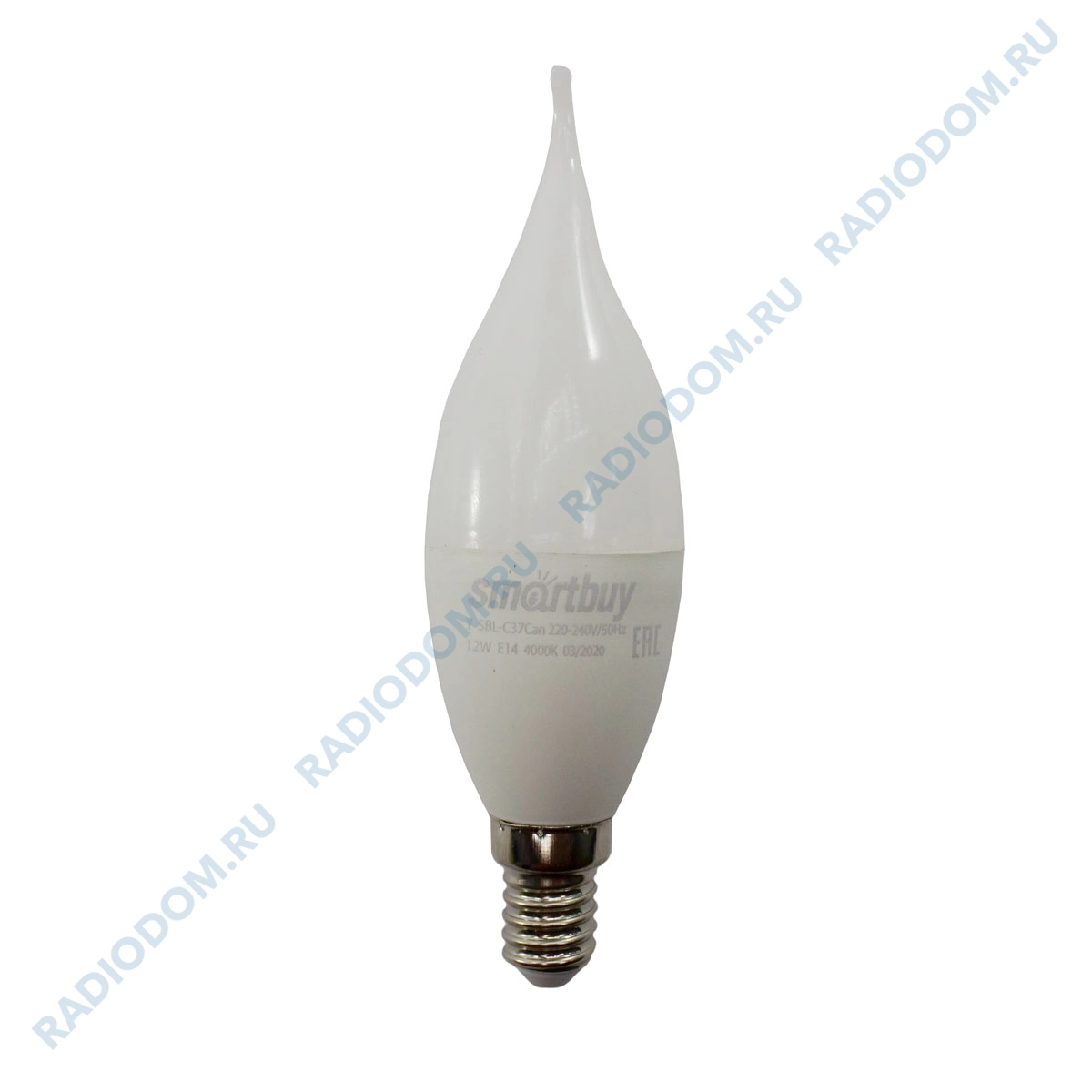 Лампа светодиодная 220В, E14, 12,0Вт, SBL-C37Can-12-40K-E14, 4000K свет белый smartbuy