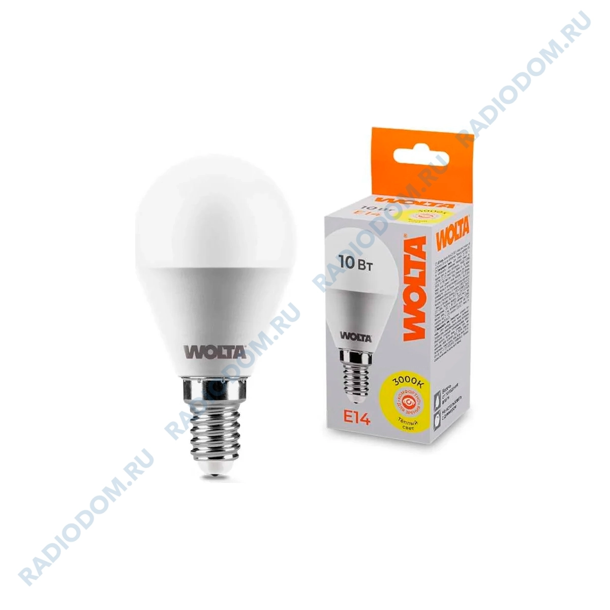 Лампа светодиодная 220В E14 10Вт 3000K 825Лм белый 25Y45GL10E14 Wolta
