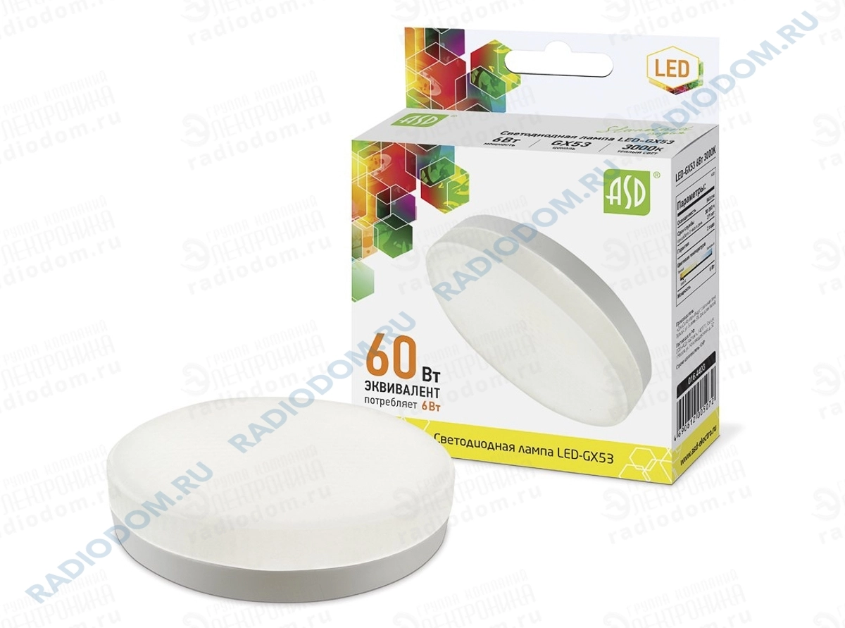 Лампа светодиодная (LED) 6Вт 220В GX53 3000К 800Лм Supra