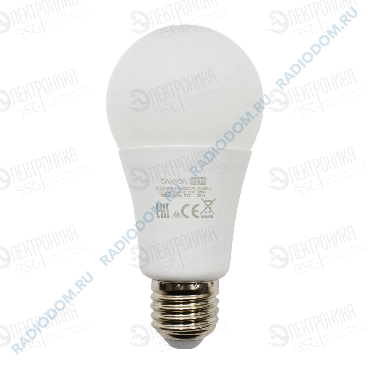 Лампа светодиодная (LED) груша 10Вт 220В E27 4000К 880Лм CANYON