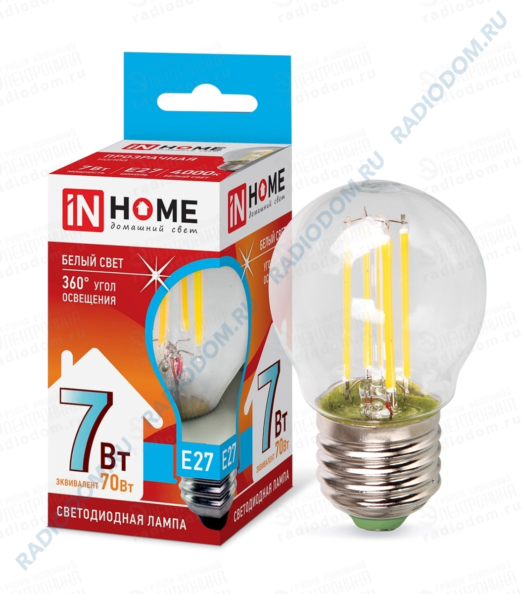 Нить со светодиодами заменила вольфрамовую, повышая долговечность данной модели в десятки раз и обладает углом освещения 360 градусов.