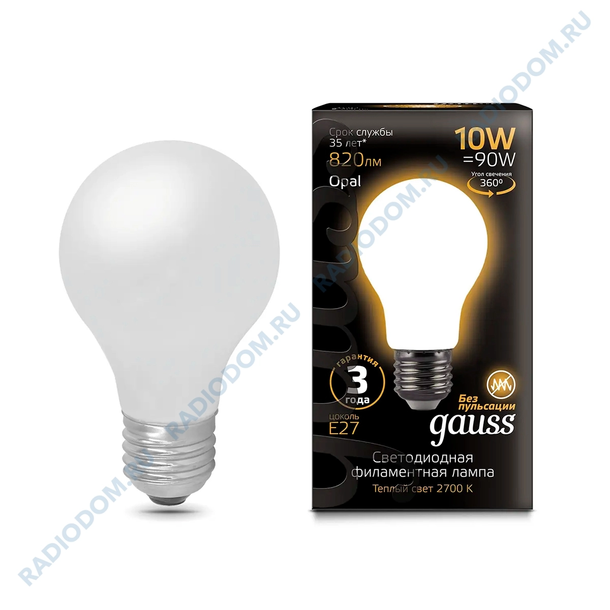 Нить со светодиодами заменила вольфрамовую, повышая долговечность данной модели в десятки раз и обладает углом освещения 360 градусов.