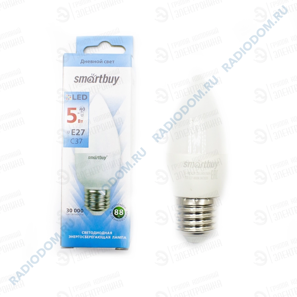 Лампа светодиодная 220В, E27, 5,0Вт, SBL-C37-05-40K-E27, 4000K свет белый smartbuy