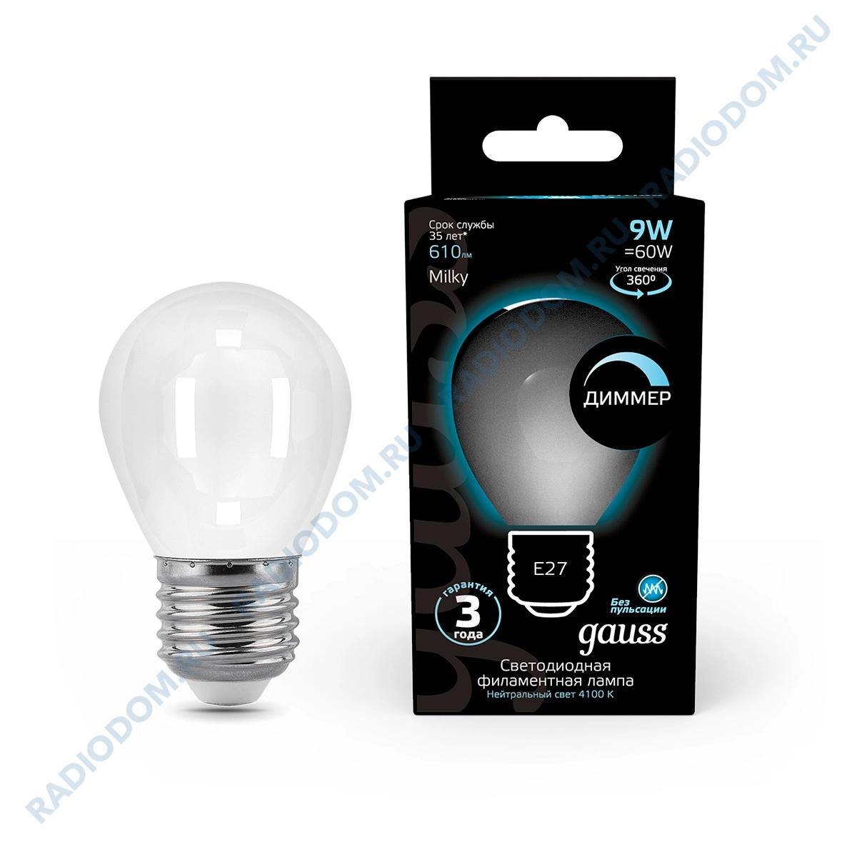 Нить со светодиодами заменила вольфрамовую, повышая долговечность данной модели в десятки раз и обладает углом освещения 360 градусов.