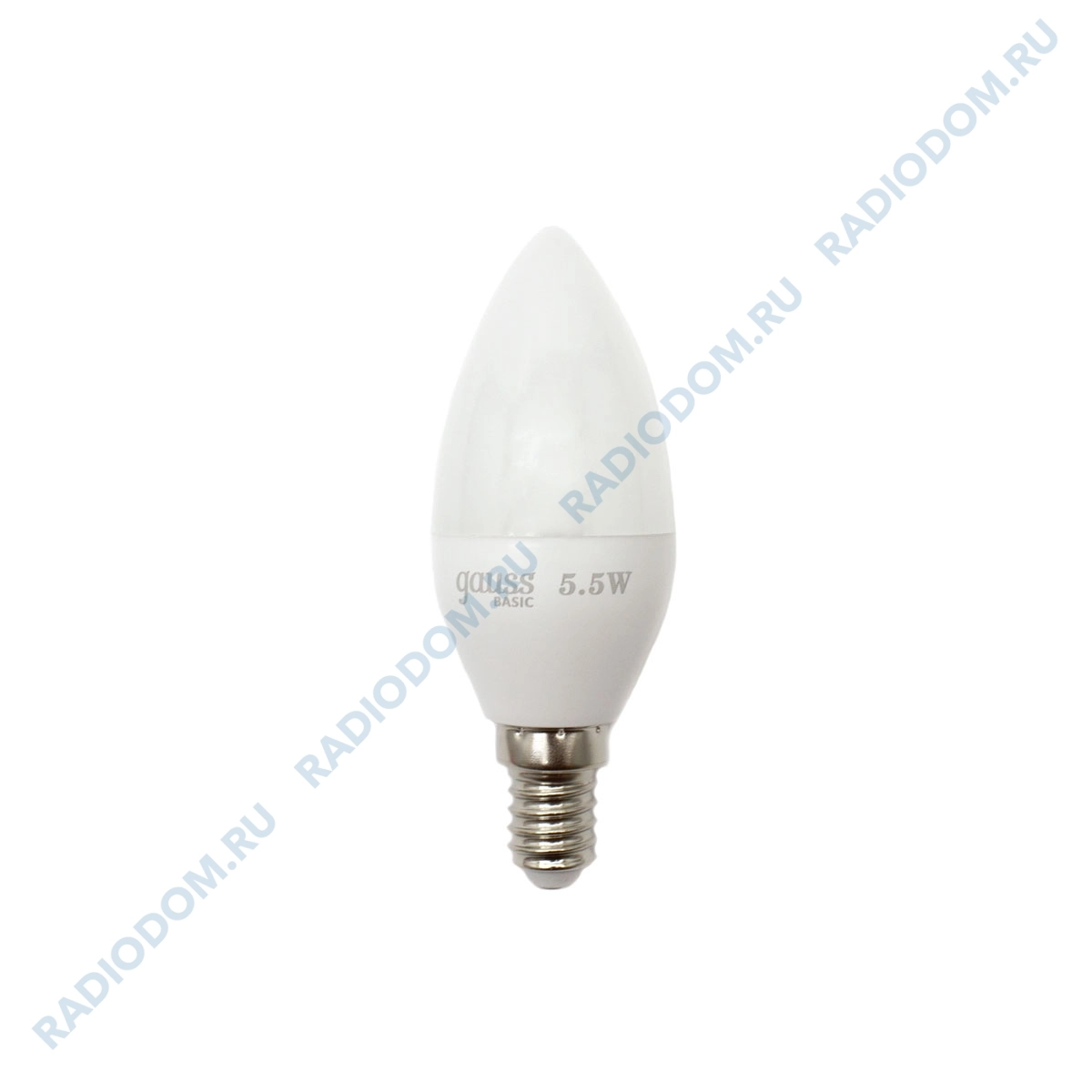 Лампа светодиодная (LED) свеча 5,5Вт 220В E14 3000K 400Лм GAUSS