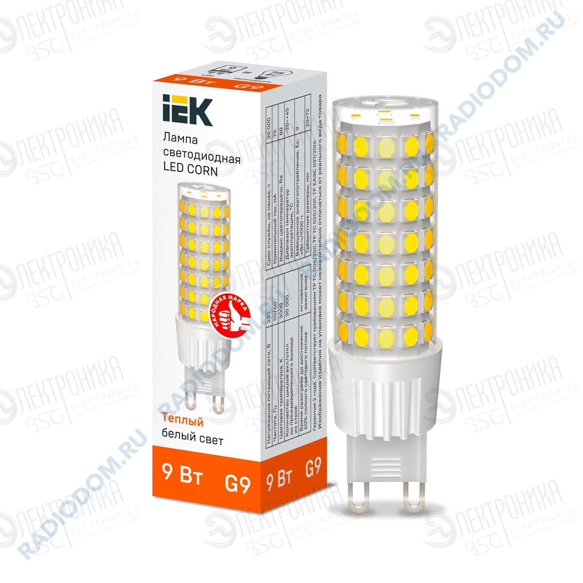 Лампа светодиодная (LED) капсульная CORN 9Вт 220В G9 3000К 855Лм iEK
