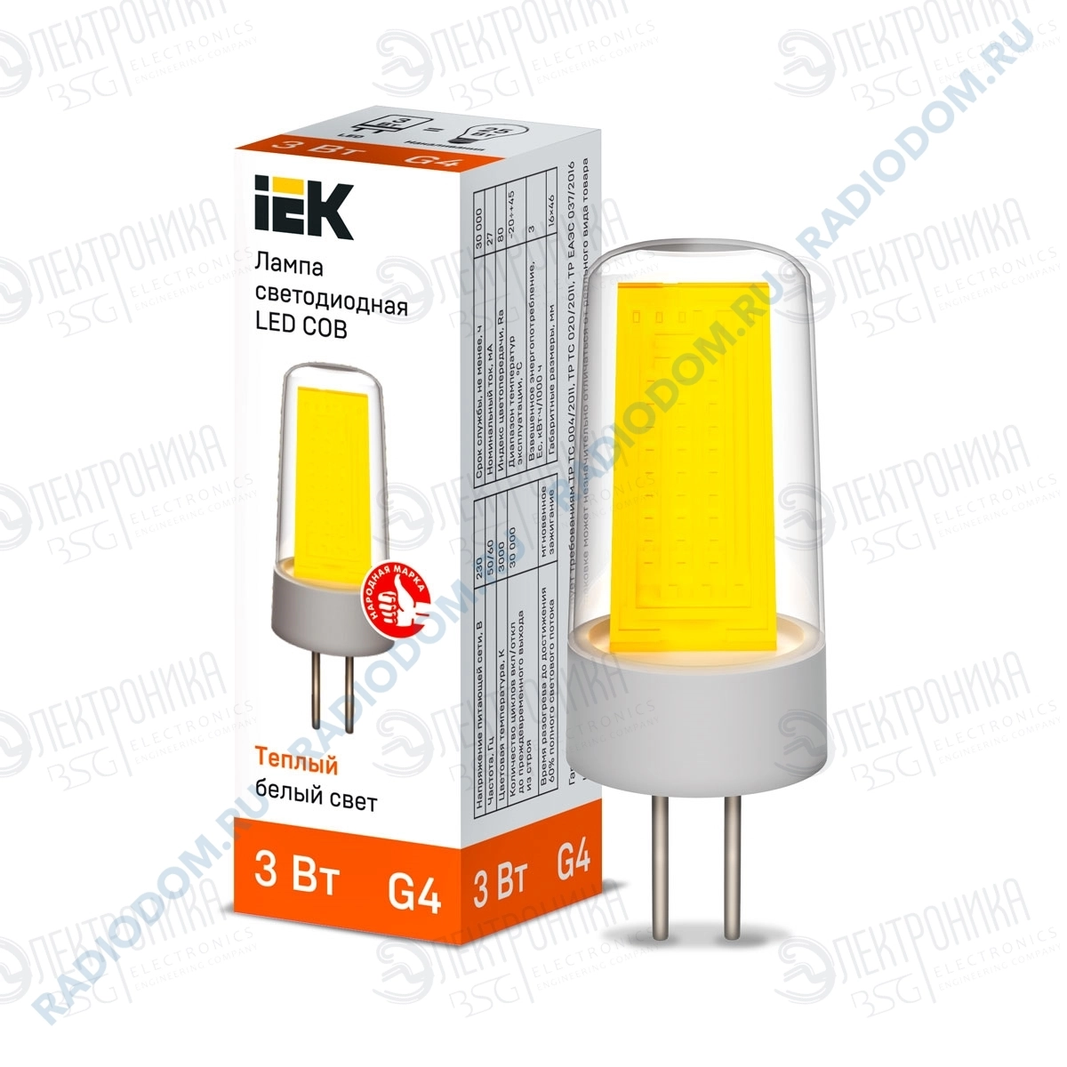 Лампа светодиодная (LED) капсульная 3Вт 220В G4 3000К 285Лм iEK