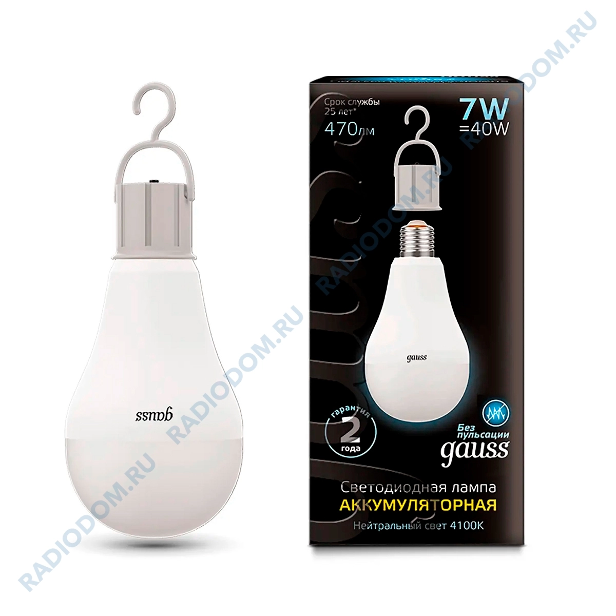 Отключение света происходит резко и неожиданно, в такой ситуации вас выручит лампа со встроенным аккумулятором и обеспечит вас светом до 2,5 часов. Её можно применять как основной источник света (640 Лм), ввинтив в патрон, а в случае внезапного отключения света или при падении напряжения, она продолжит работу в аварийном режиме (140 Лм), работая от встроенного аккумулятора. Аккумулятор лампы заряжается в патроне светильника. Температура свечения в 4100 К – будет комфортной, так как приближена к естественному освещению. Стандартный цоколь Е27. Потребляемая мощность 7 Вт. В комплект входит крепление – крючок, который позволит использовать лампу как переносной фонарь.