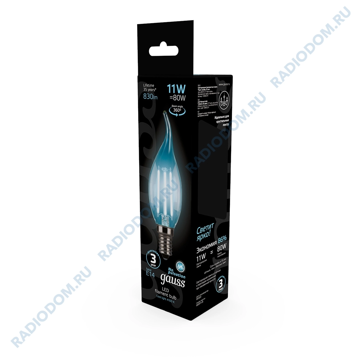 Лампа светодиодная (LED) свеча на ветру 11Вт 220В E14 4100K 750Лм gauss