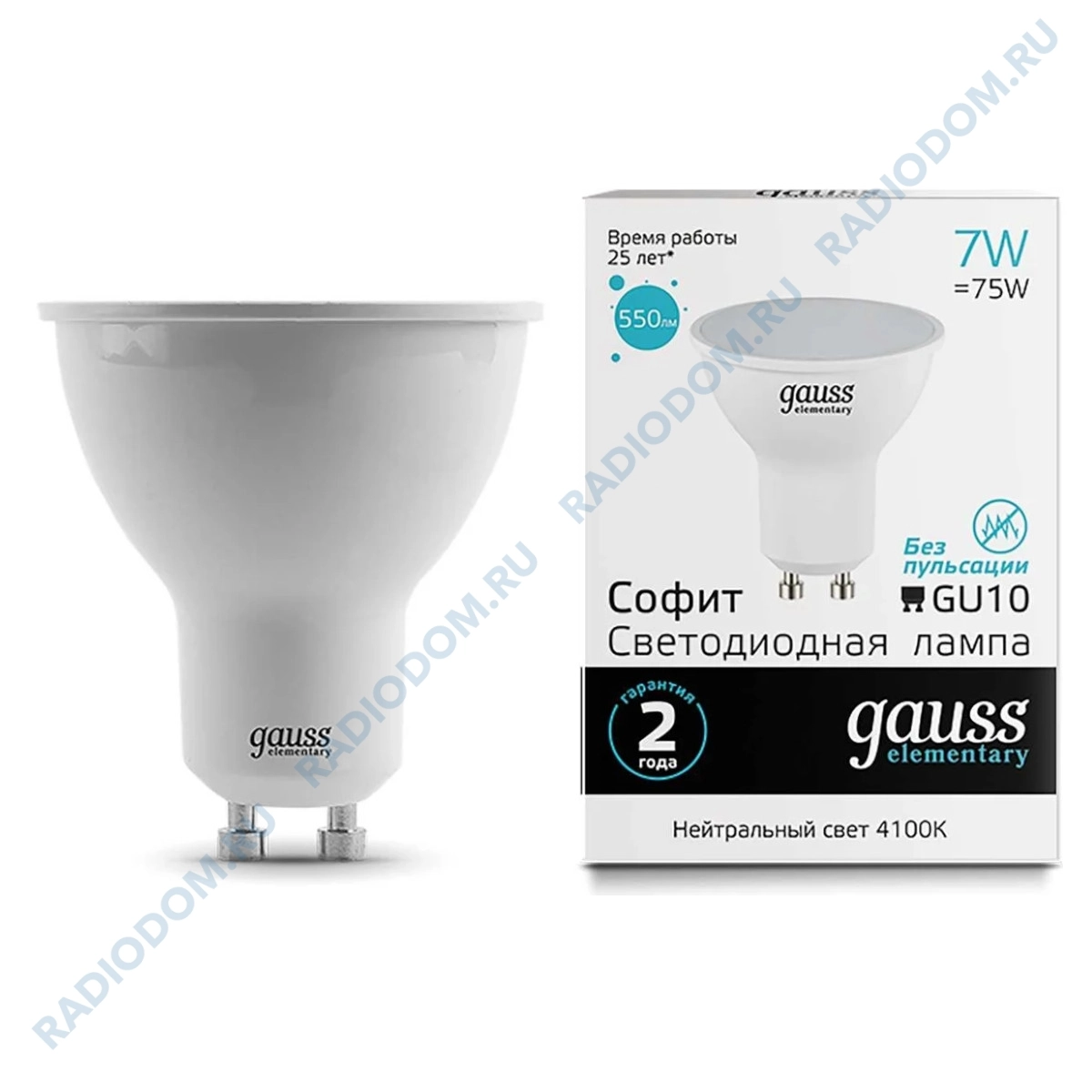 Лампа светодиодная (LED) рефлектор MR16 7Вт 220В GU10 4100К 550Лм 13627 gauss