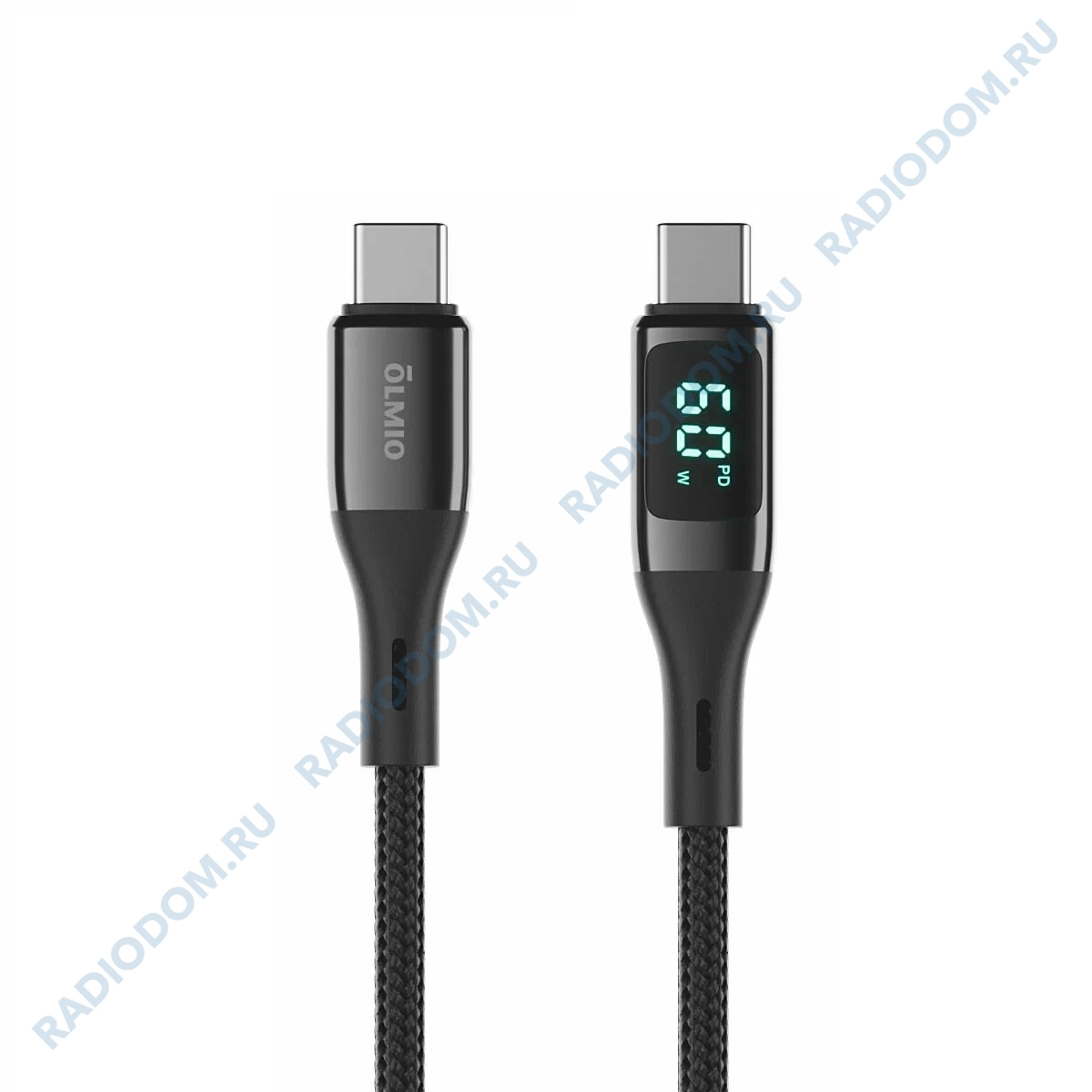 Шнур Type-C - Type-C 1,2 м GEEK черный с дисплеем OLMIO