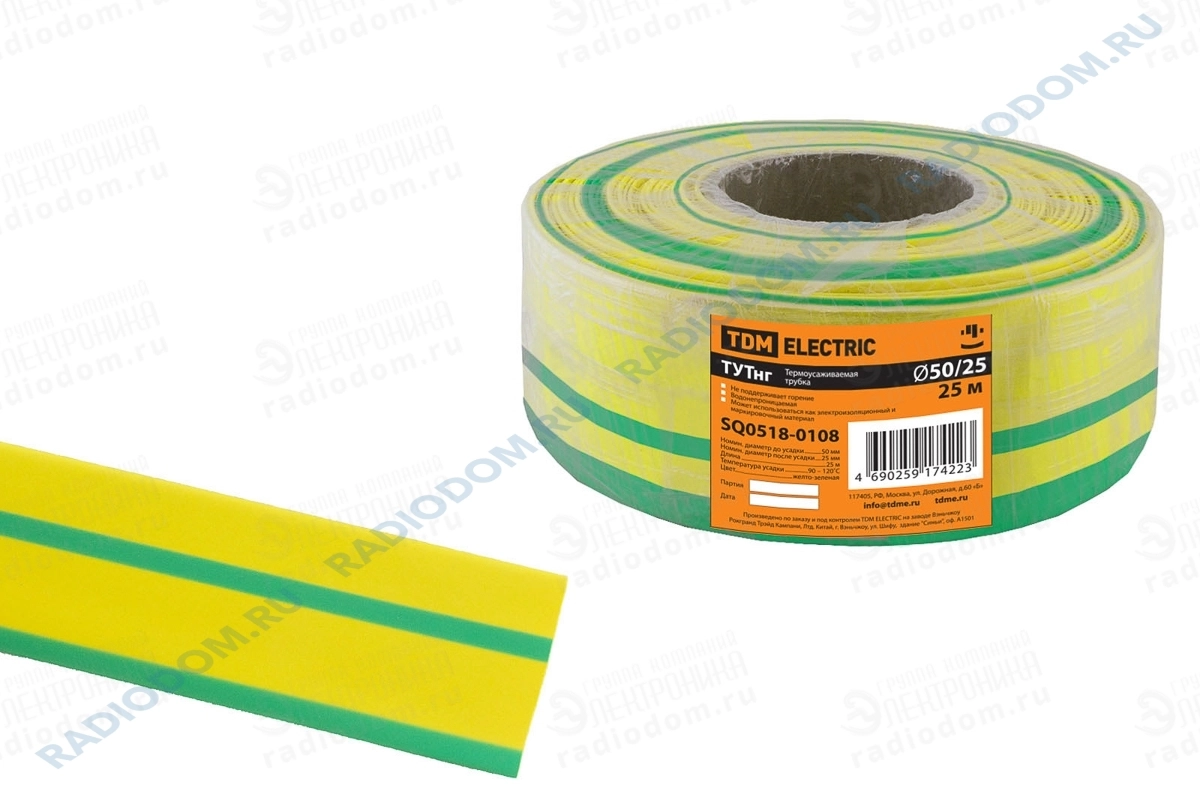 Трубка термоусадочная 50/25мм желто-зеленая 1м TDM ELECTRIC