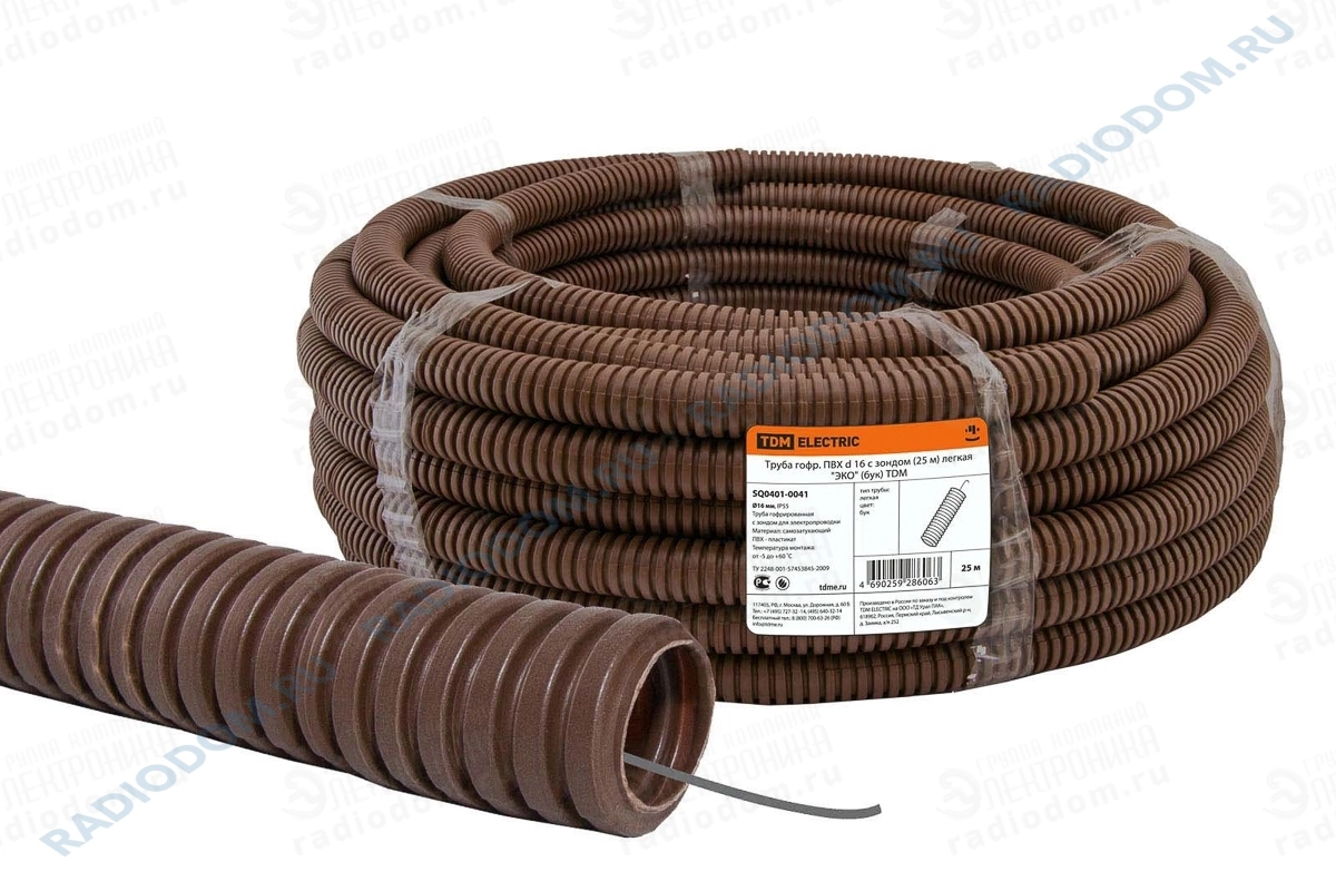 Труба гофрированная ПВХ 16мм с зондом 25м ‘‘ЭКО‘‘ (бук) SQ0401-0041 TDM ELECTRIC