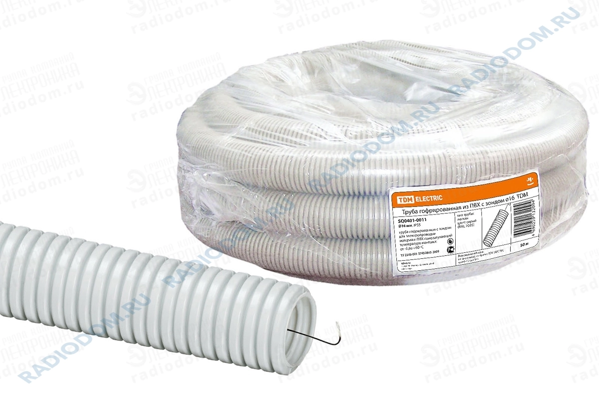 Труба гофрированная ПВХ 16мм с зондом 50м SQ0401-0011 TDM ELECTRIC SQ0401-0011