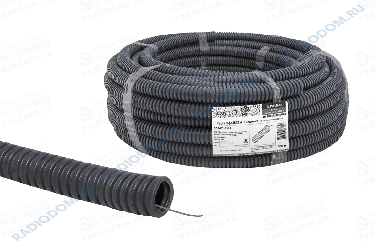 Труба гофрированная ПВХ 16мм с зондом 100м Народная TDM ELECTRIC SQ0401-0301