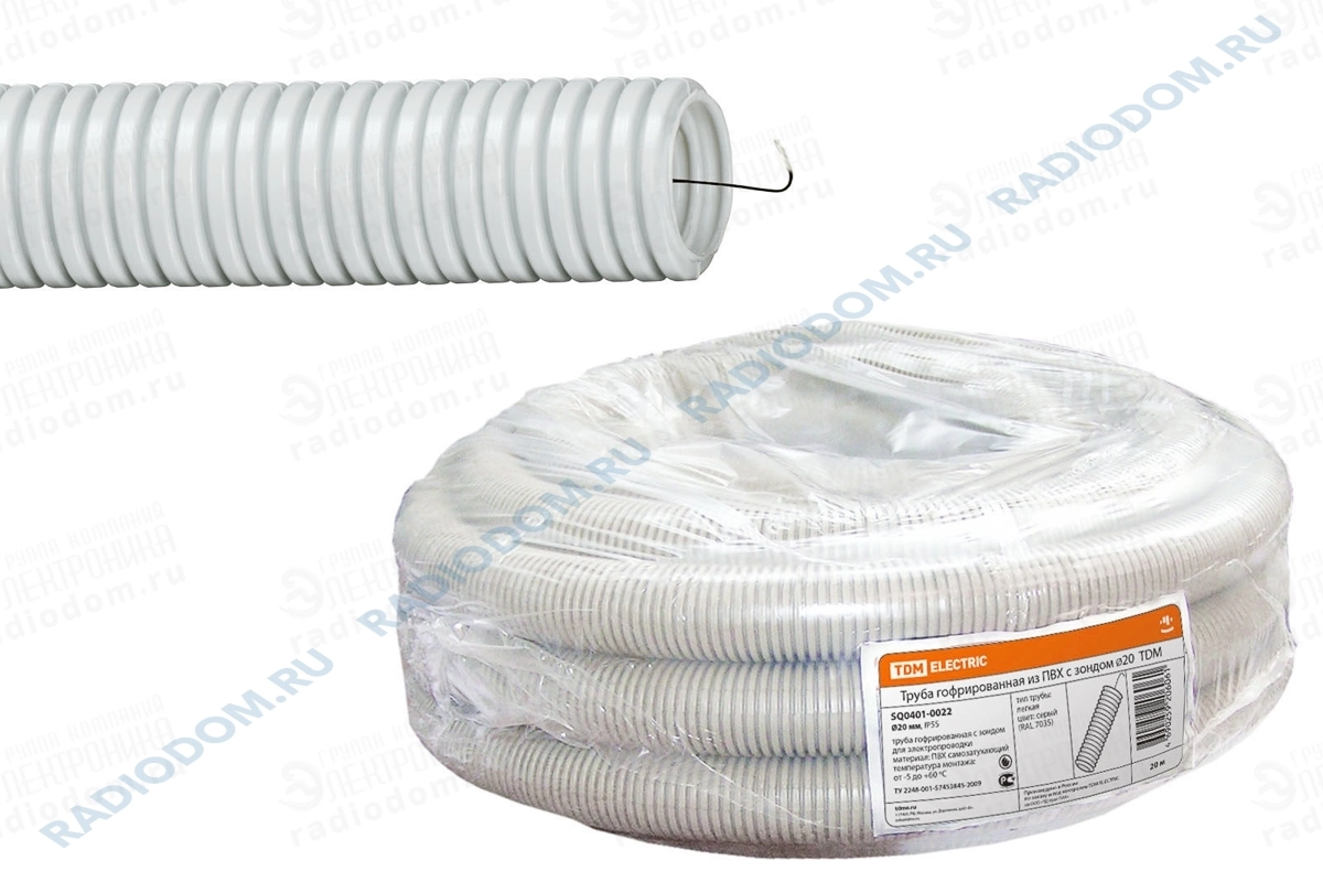 Труба гофрированная ПВХ с зондом d=20мм 20м серая TDM