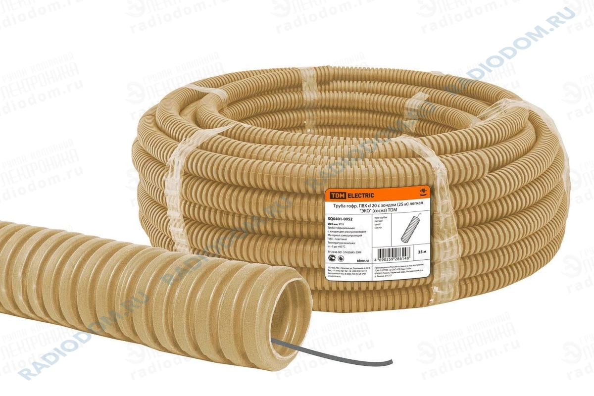 Труба гофрированная ПВХ с зондом d=20мм 25м ЭКО(сосна) TDM