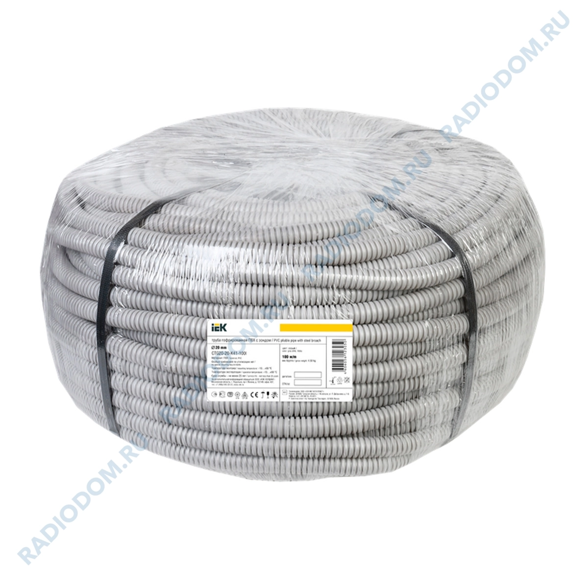 Труба гофрированная ПВХ с зондом d20мм 100м серая IEK