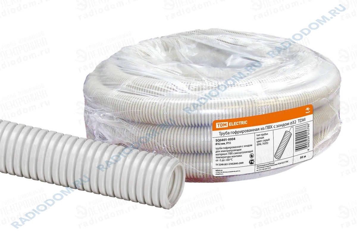 Труба гофрированная ПВХ с зондом D= 32мм 50м черная TDM